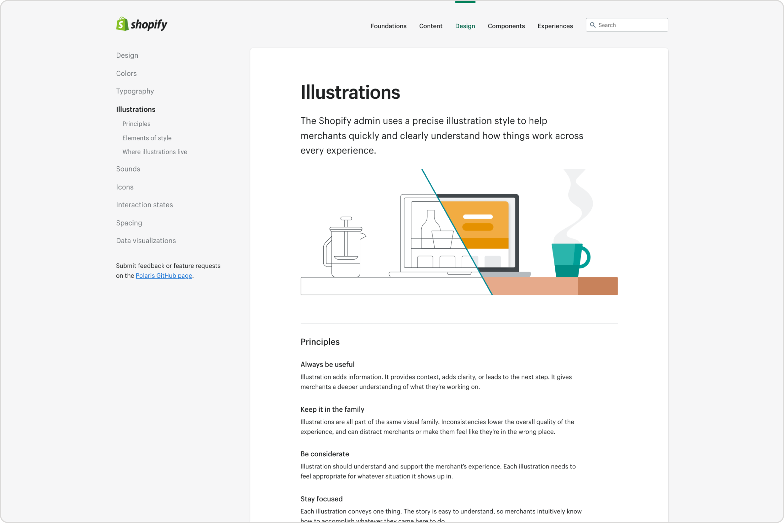 Leading up to the launch, I also built new internal educational content for the illustration system, and external-facing documentation as part of Polaris to help explain why the changes were being made, and how internal designers could continue evolving and contributing to the system. We ensured all finalized assets were organized and labelled and accessible in Figma libraries for use by product teams company-wide.