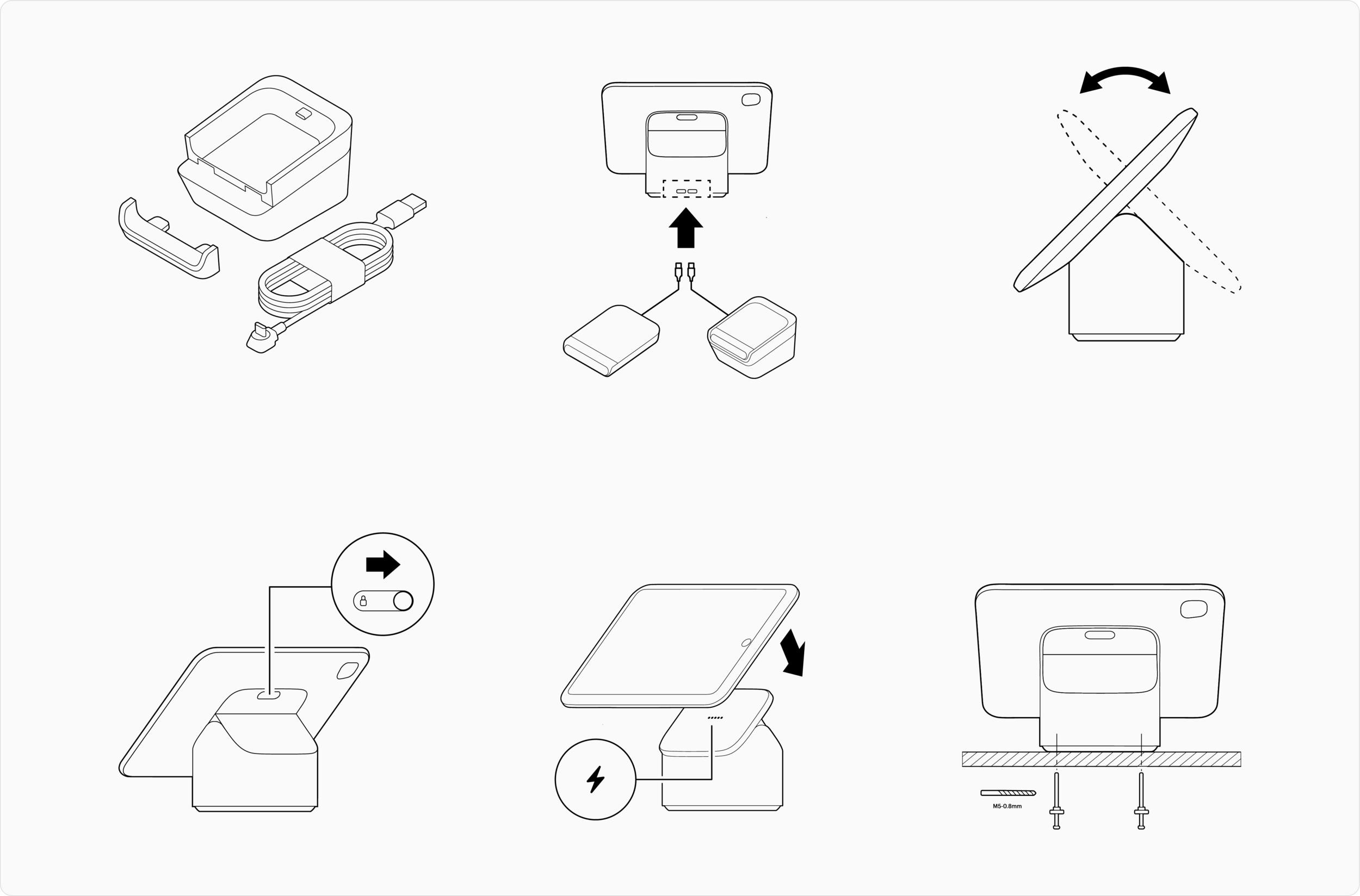 I began by investigating technical illustration from other companies and industries to identify the kinds of details that would lend themselves best to the experiences we were building. From there, I defined a series of principles: Clarity, Continuity, and Accuracy. These principles would guide our decision making around what kinds of angles of the devices we should render, what details to surface and how to indicate actions and features of importance.